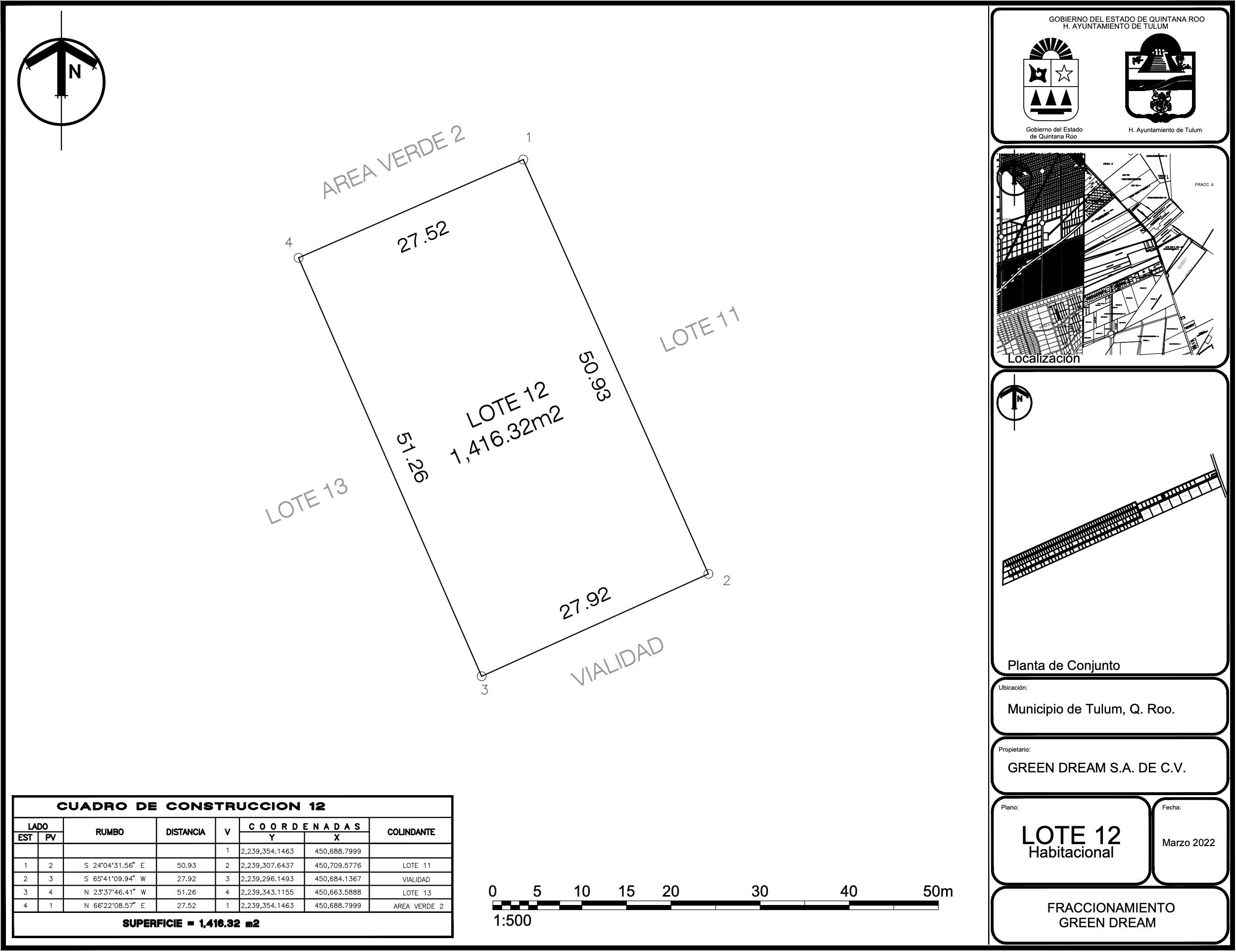 GREEN DREAM – supermanzana REGIÓN 015, SUPERMANZANA 004, Mz. MANZANA 001, lote LOTE 012,